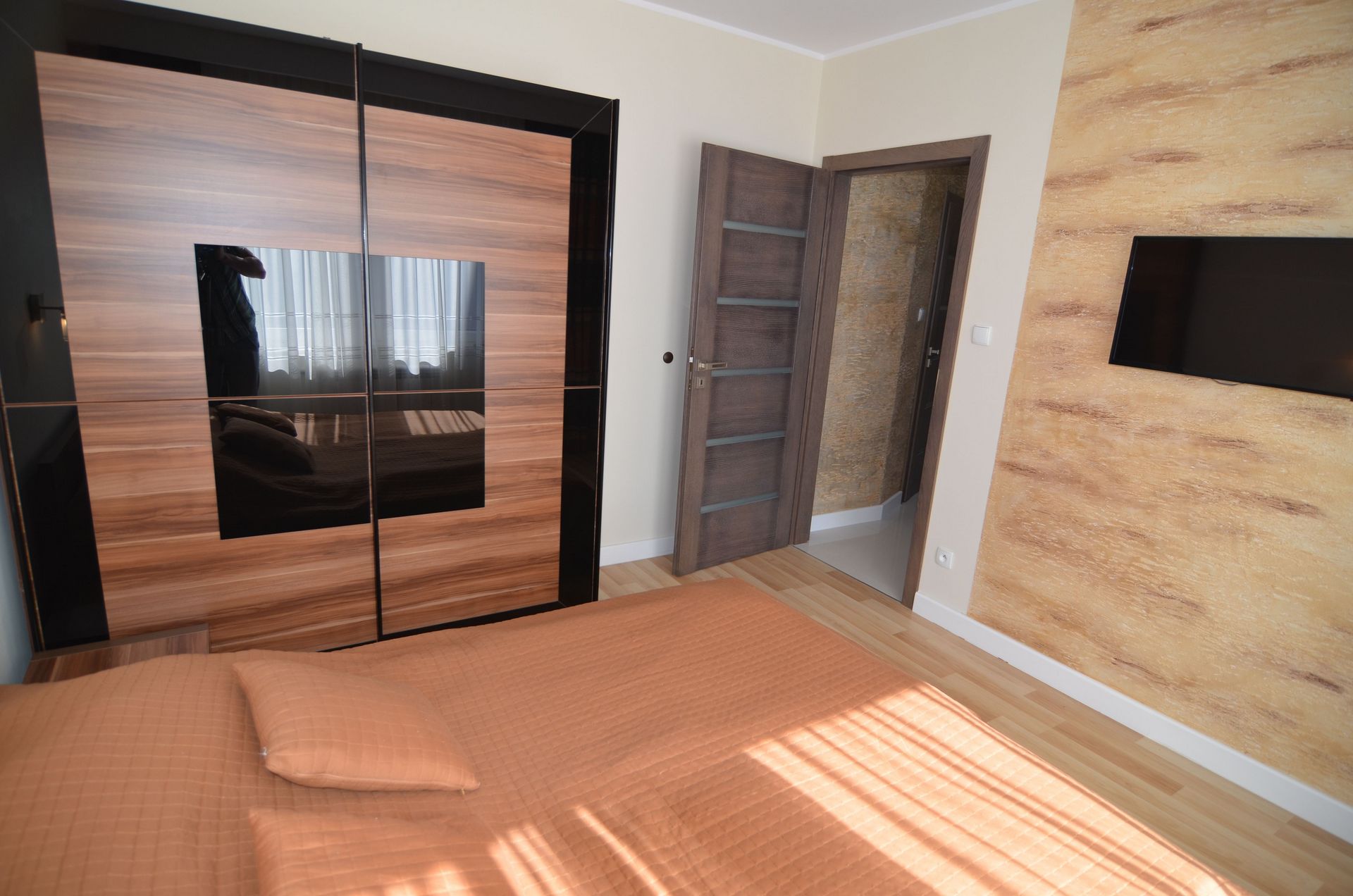 Apartament na niskim parterze z bezpośrednim wyjściem na podwórze. Apartament posiada podwyższony sufit i duże okna na podwórze. Nasi klienci chwalą go za jego przestronność i przytulny wystrój.